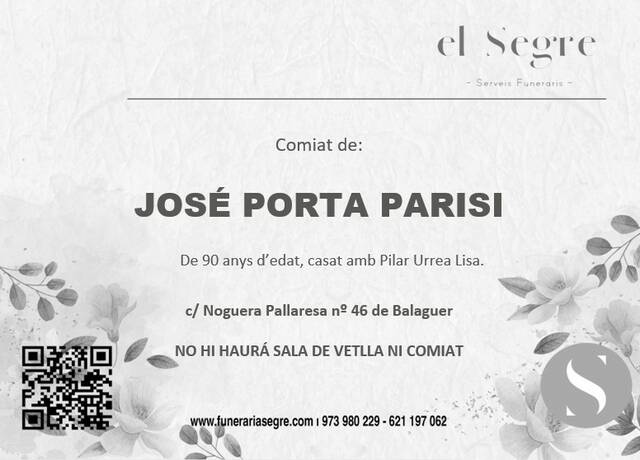 De 90 anys d'edat, casat amb Pilar Urrea Lisa.