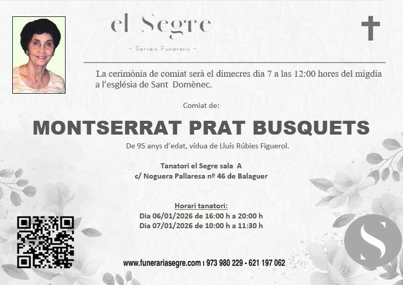 De 95 anys, vídua de Lluís Rúbies Figuerol