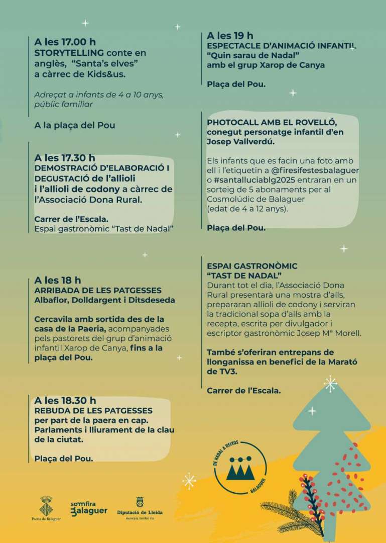 Durant la jornada de la celebració del Mercat de Santa Llúcia - Fira dels alls, també s'hi realitzen diverses activitats paral·leles, com ara, l'arribada de les patgesses, amb sortida a les 18 h de la casa de la Paeria i arribada a les 18.30 h a la plaça del Pou