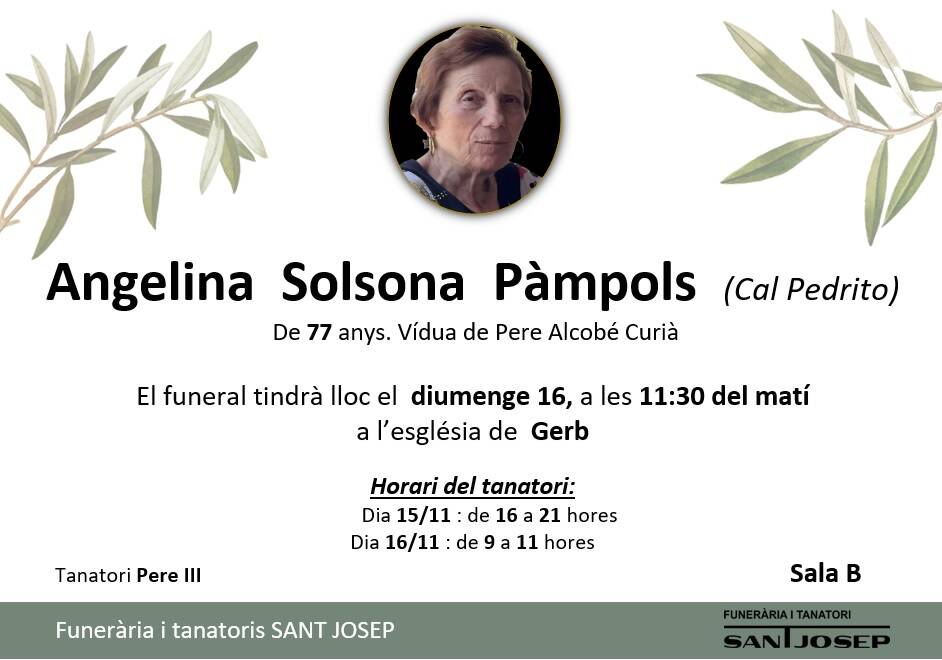 De 77 años, viuda de Pere Alcobé Curià