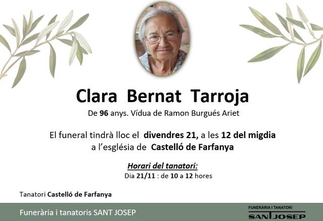 De 96 años, viuda de Ramon Burgués Ariet